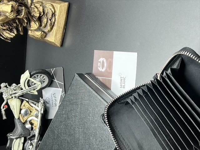 جاکارتی مونت بلان مدل کرکره ای ( آکاردئونی ) عکس خور - چرم فلوتر درختی - جای اسکناس - مسترکوالیتی + جعبه و سریال کارت Montblanc Cardholder
