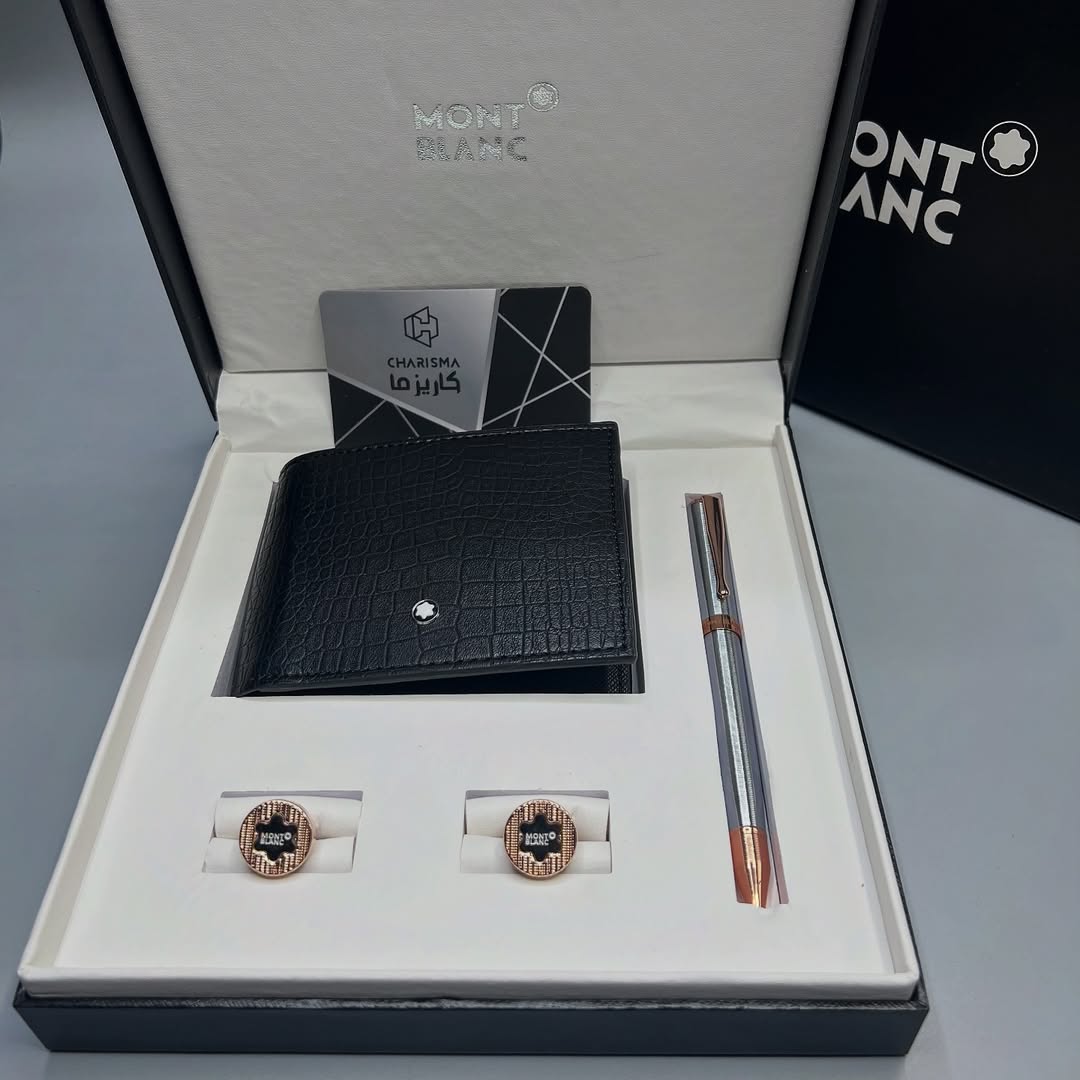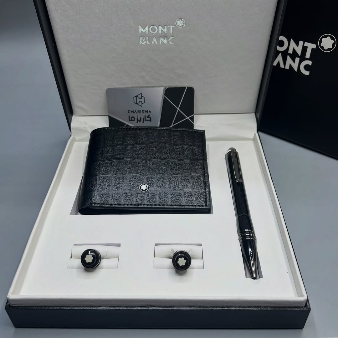 ست کادویی مون بلان کیف پول جیبی + دکمه سر آستین + خودکار