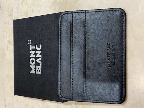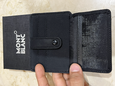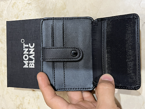 کیف کارت دکمه ای برند مون بلان طرح چرم مشکی ساده