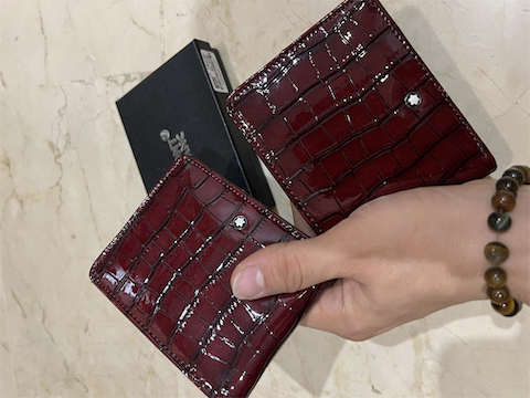 کیف پول مون بلان مدل جیبی رنگ زرشکی ورنی